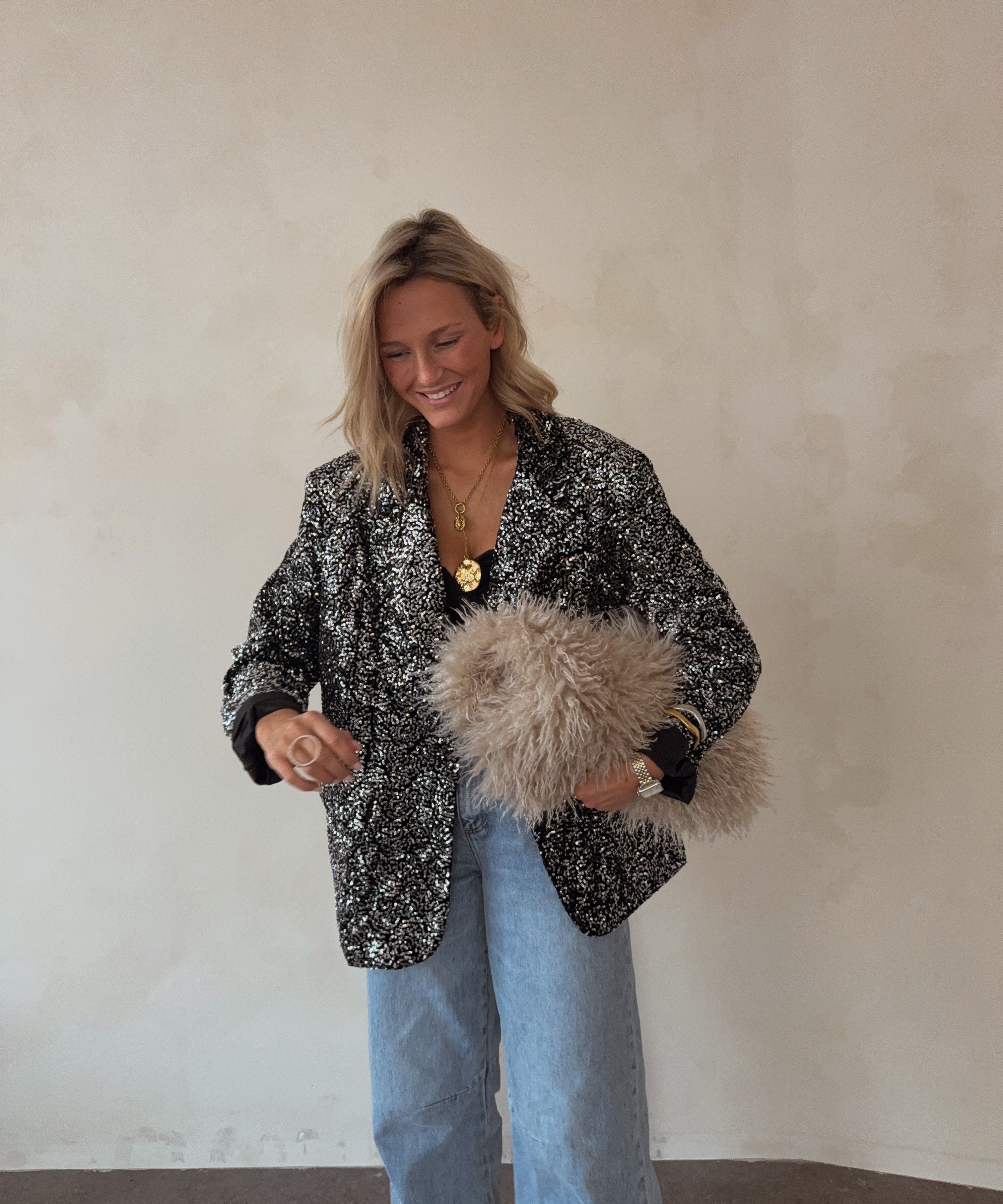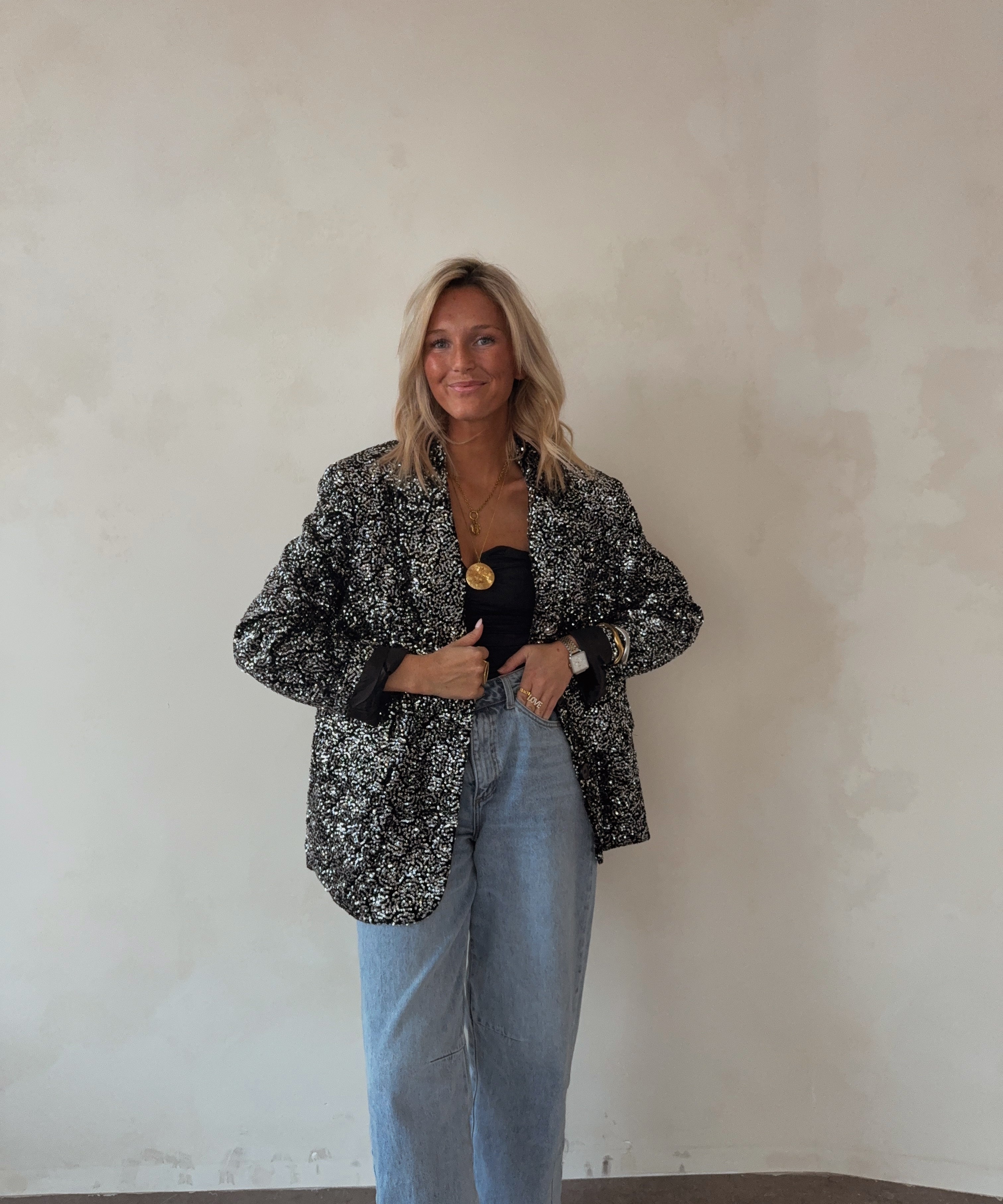 Overized blazer with sequins silver