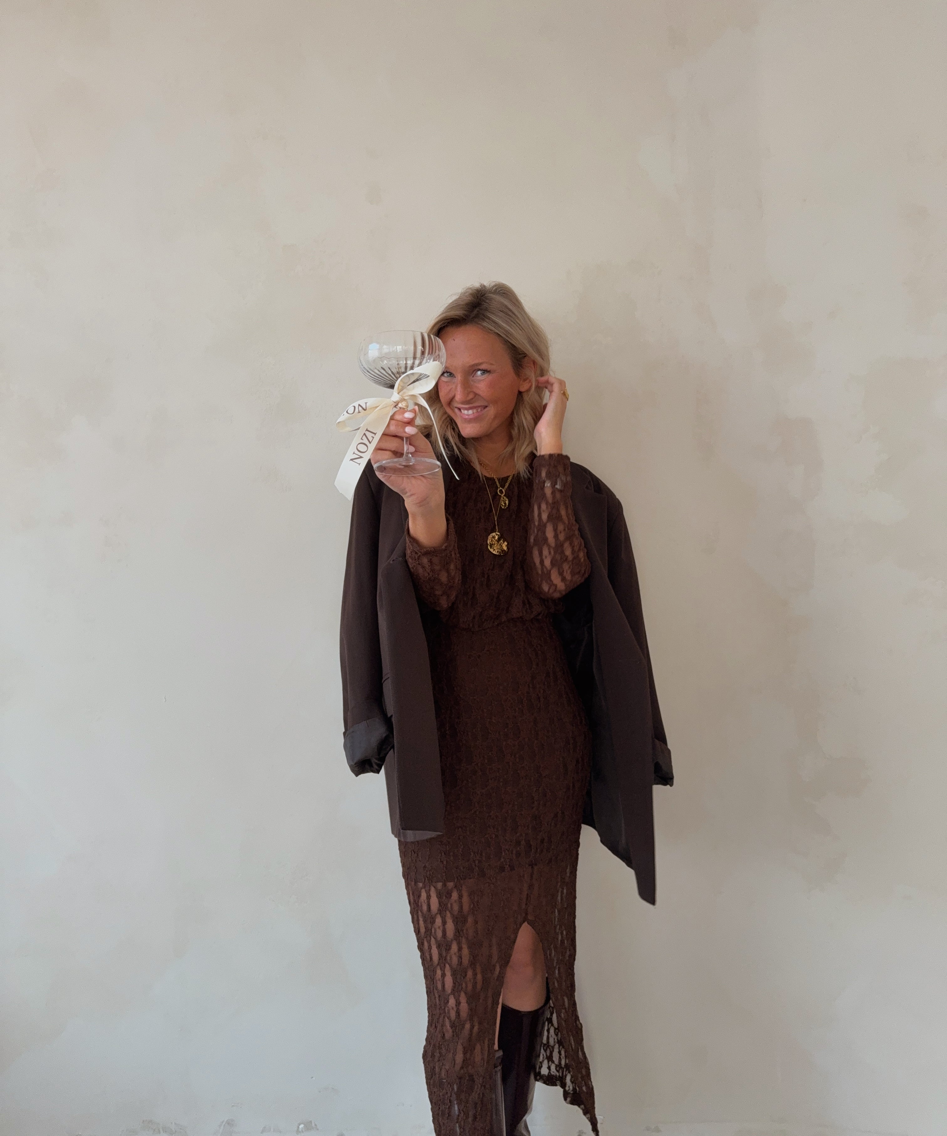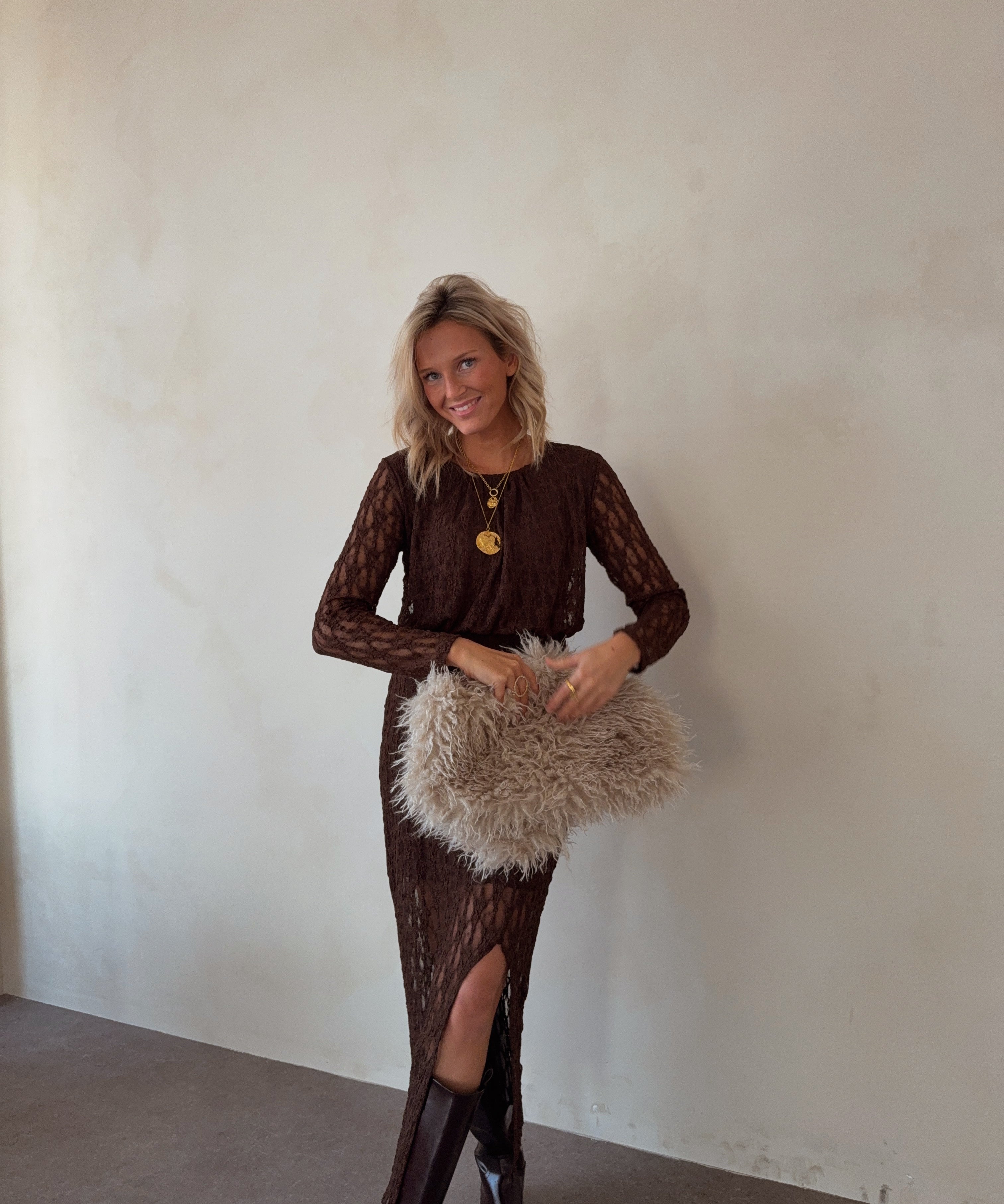 Siv long lace dress chocolate