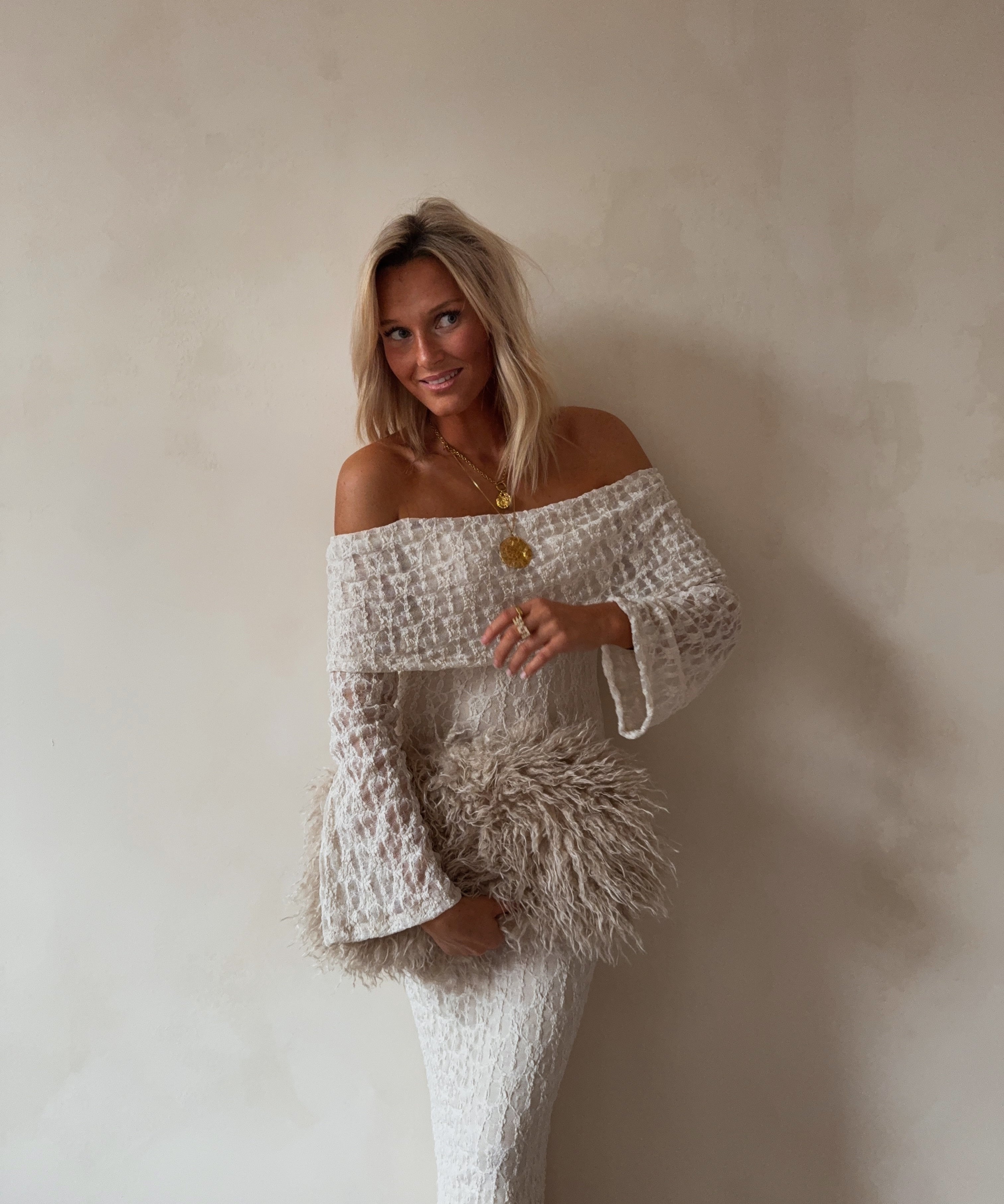 Long lace dress ecru