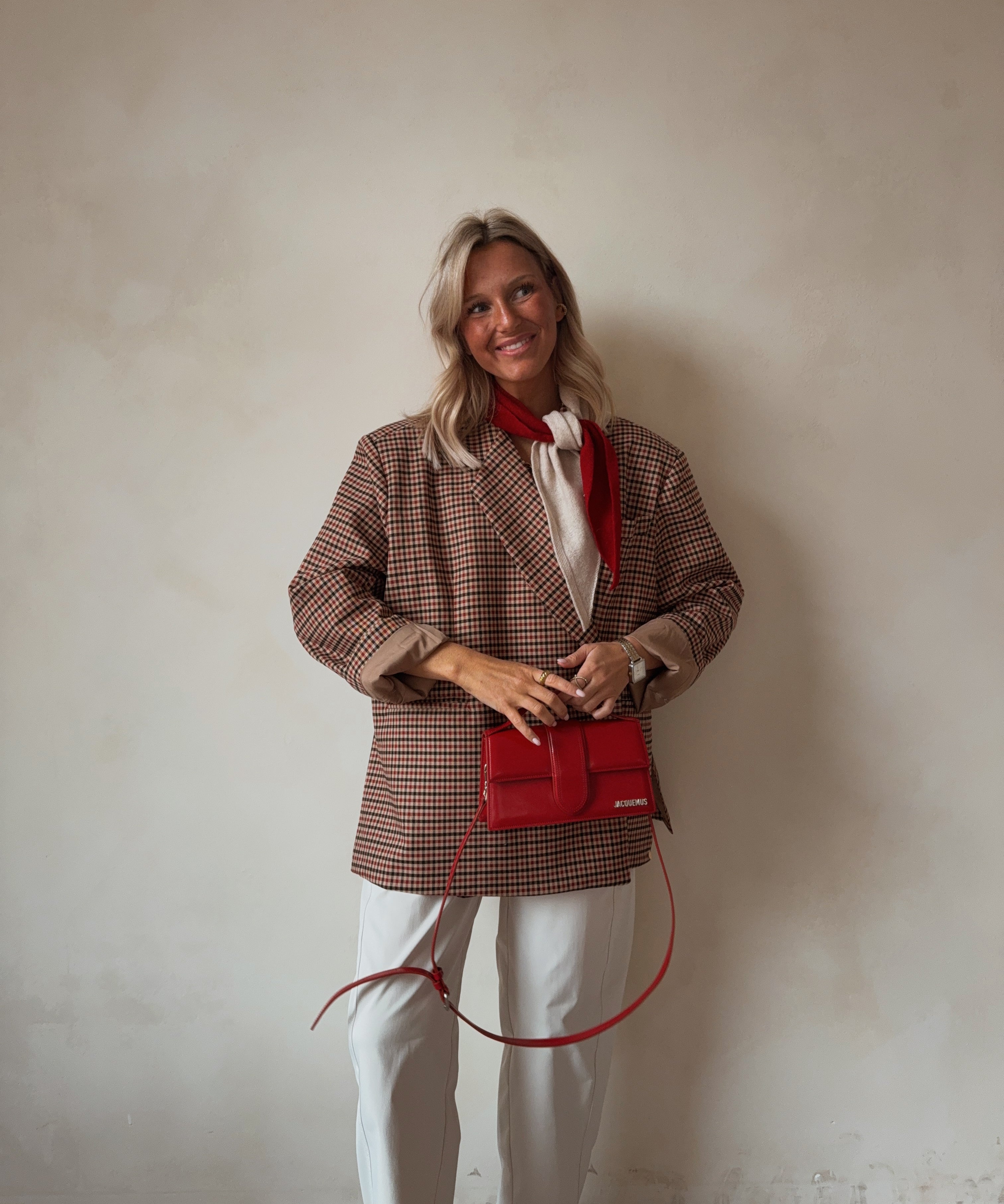 Scarf red/beige
