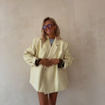 Stijlvolle damesblazer met een oversized pasvorm, overslag fitting die te sluiten valt met drukknopen - perfect voor zowel zakelijke als casual outfits - ook verkrijgbaar in een geruit motief. Tijdloos en veelzijdig design.