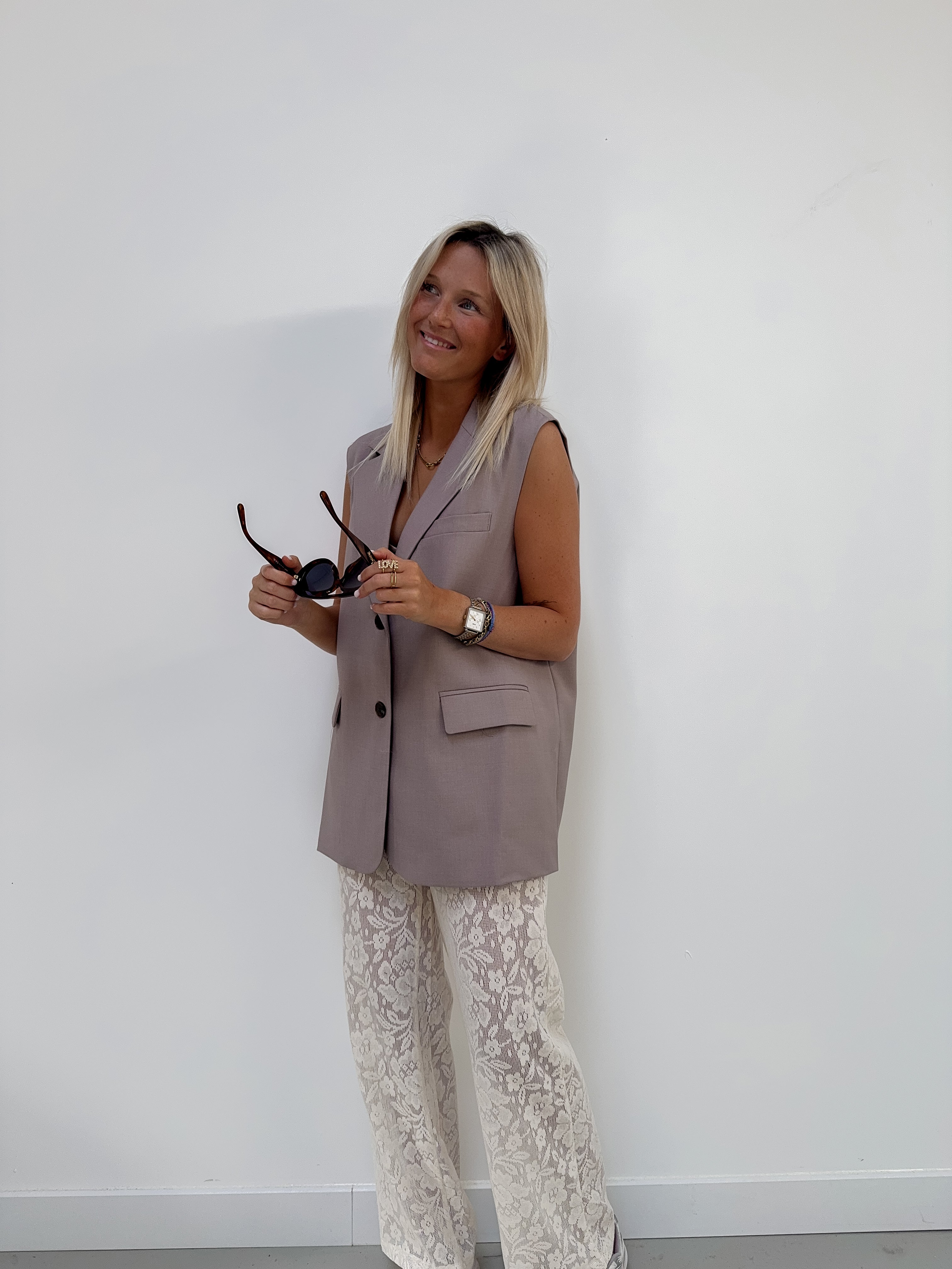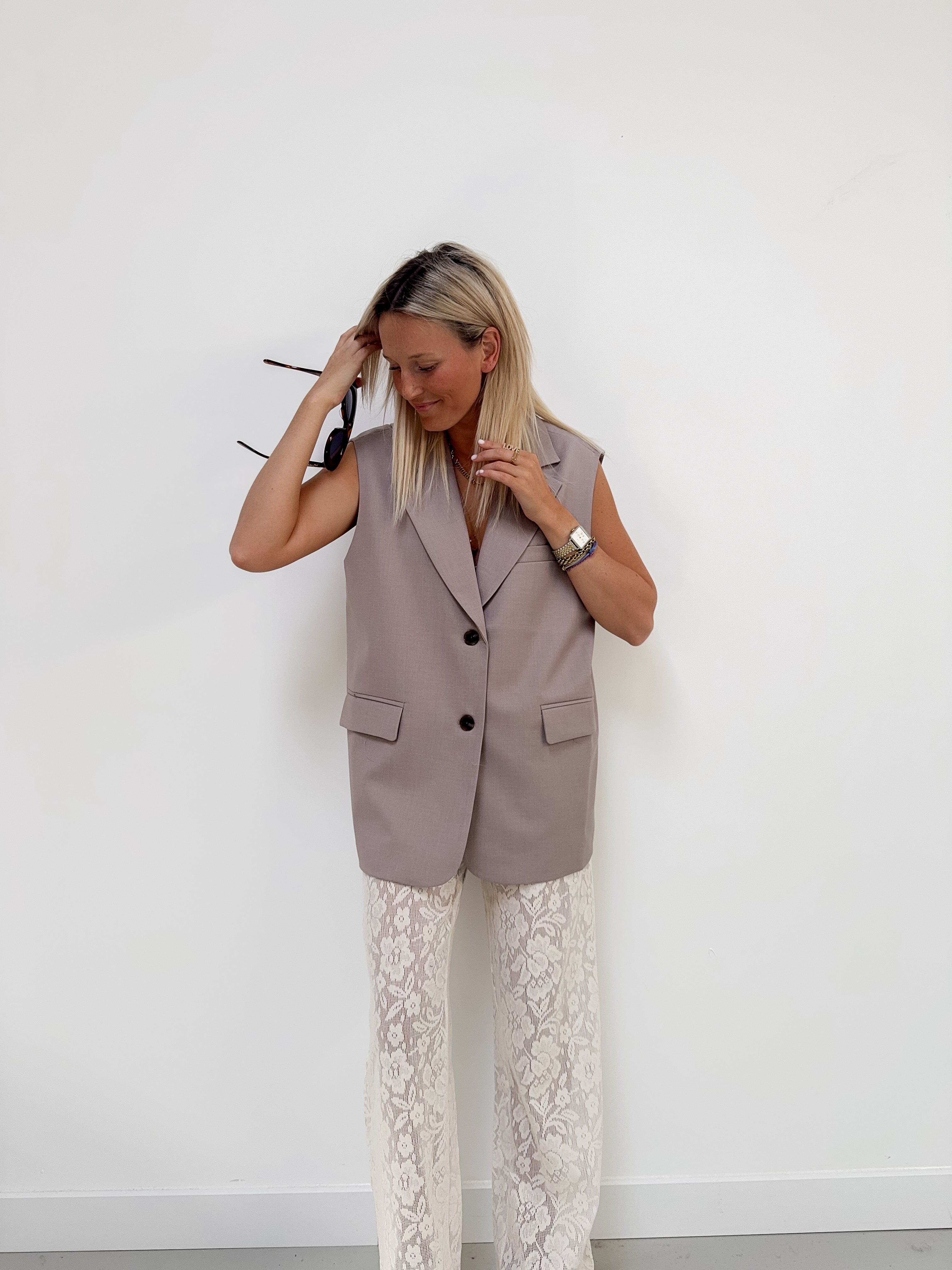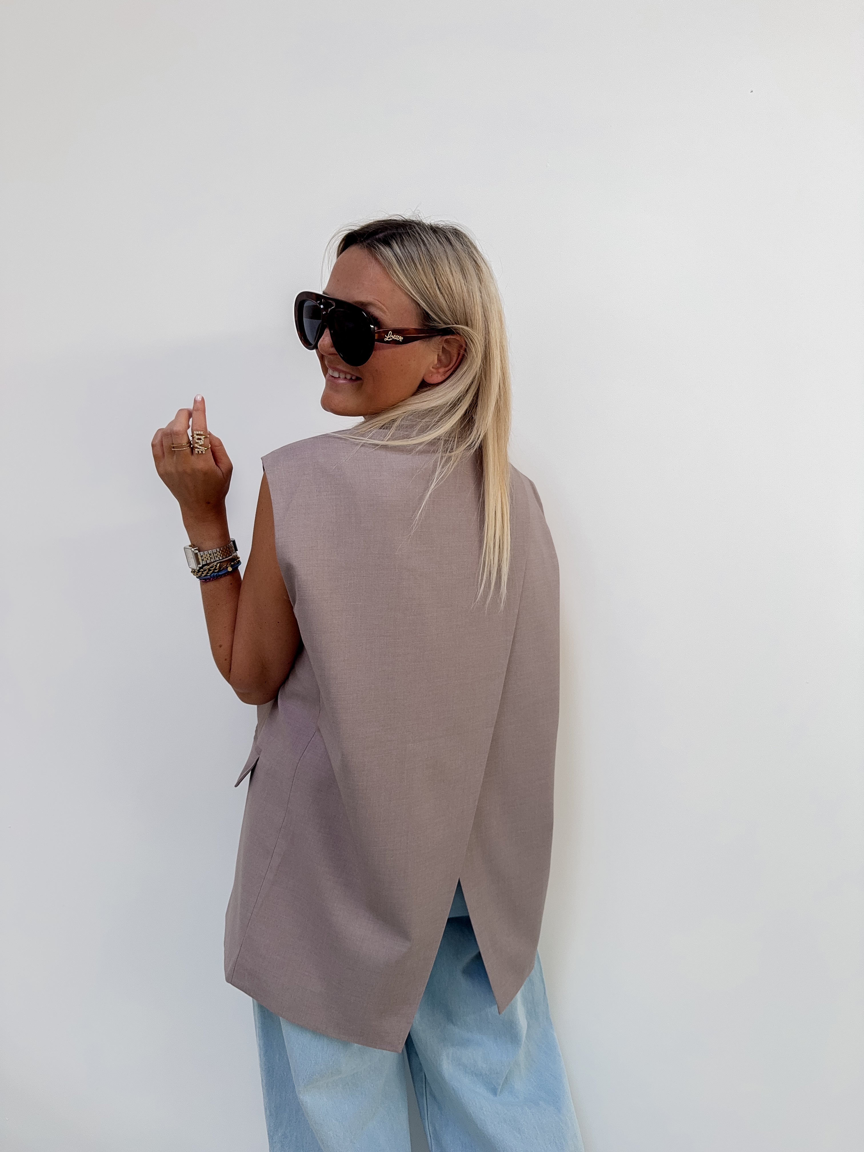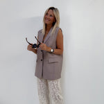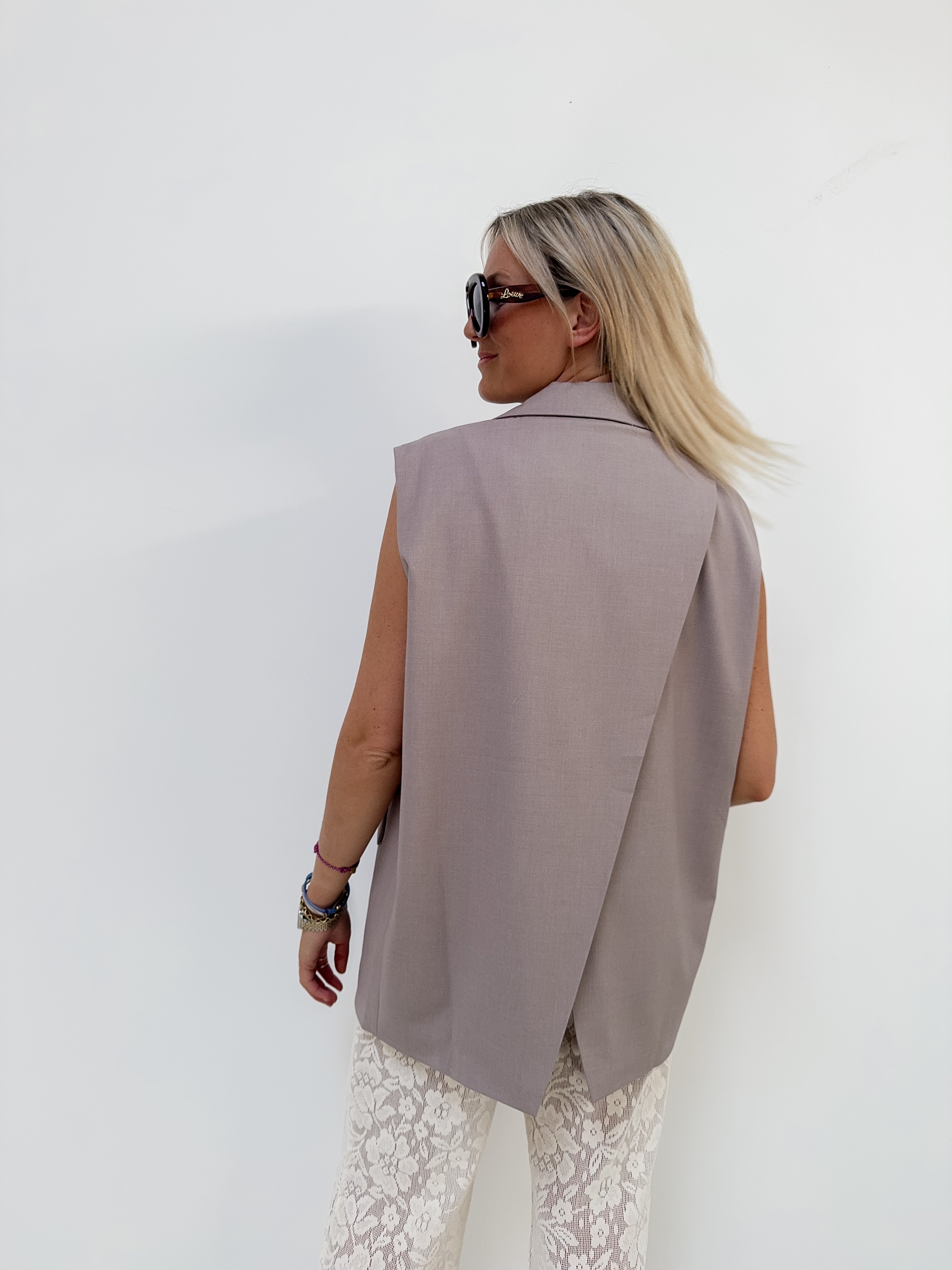 DE trend van de lente en fall onze gilet blazer met het cut out effect vannachter. eindeloos combineerbaar met eender welke broek, jeans, lace pants,.. je draagt hem bovenaan zonder iets met een bh onder of met een mooie top onder.