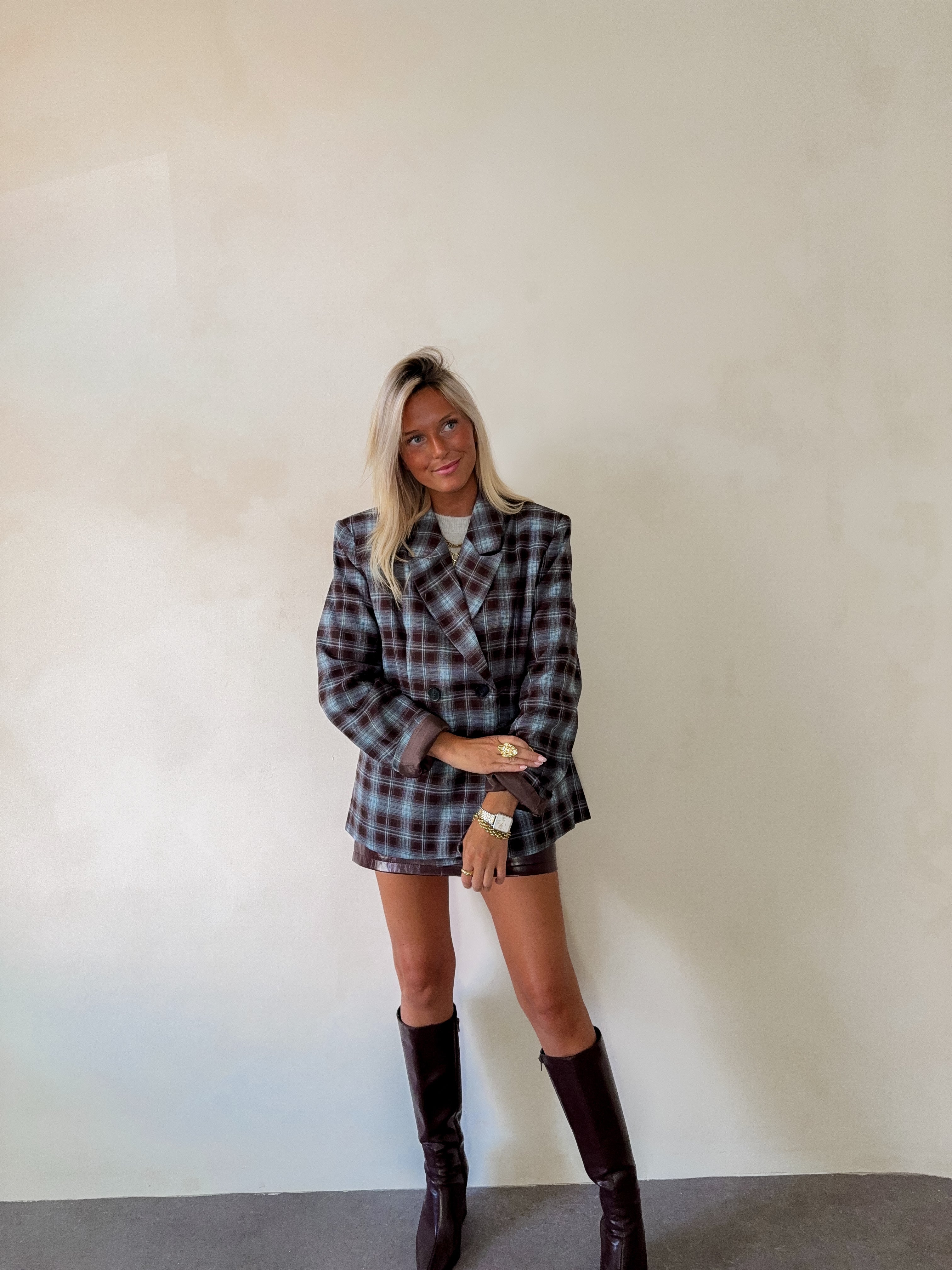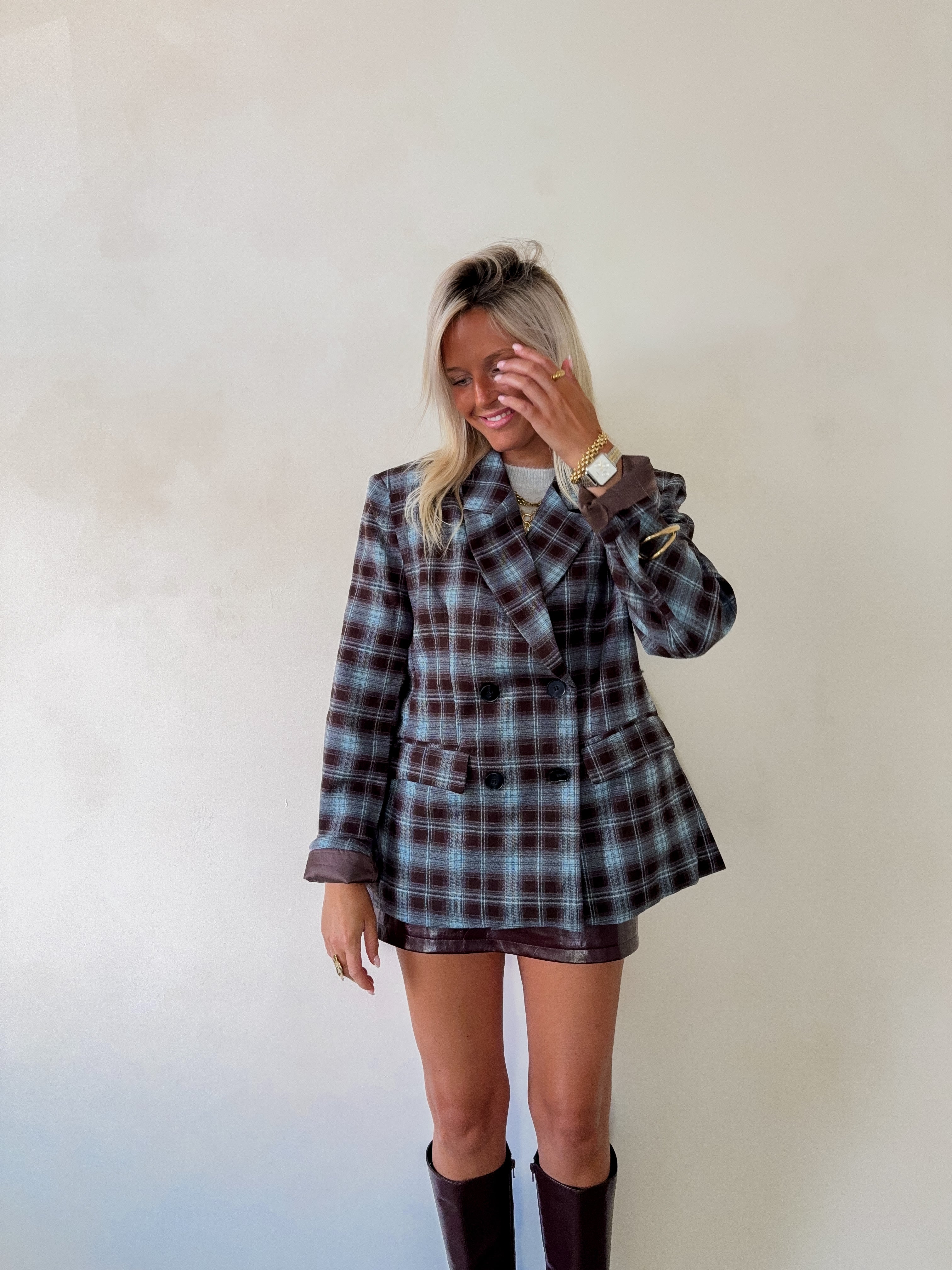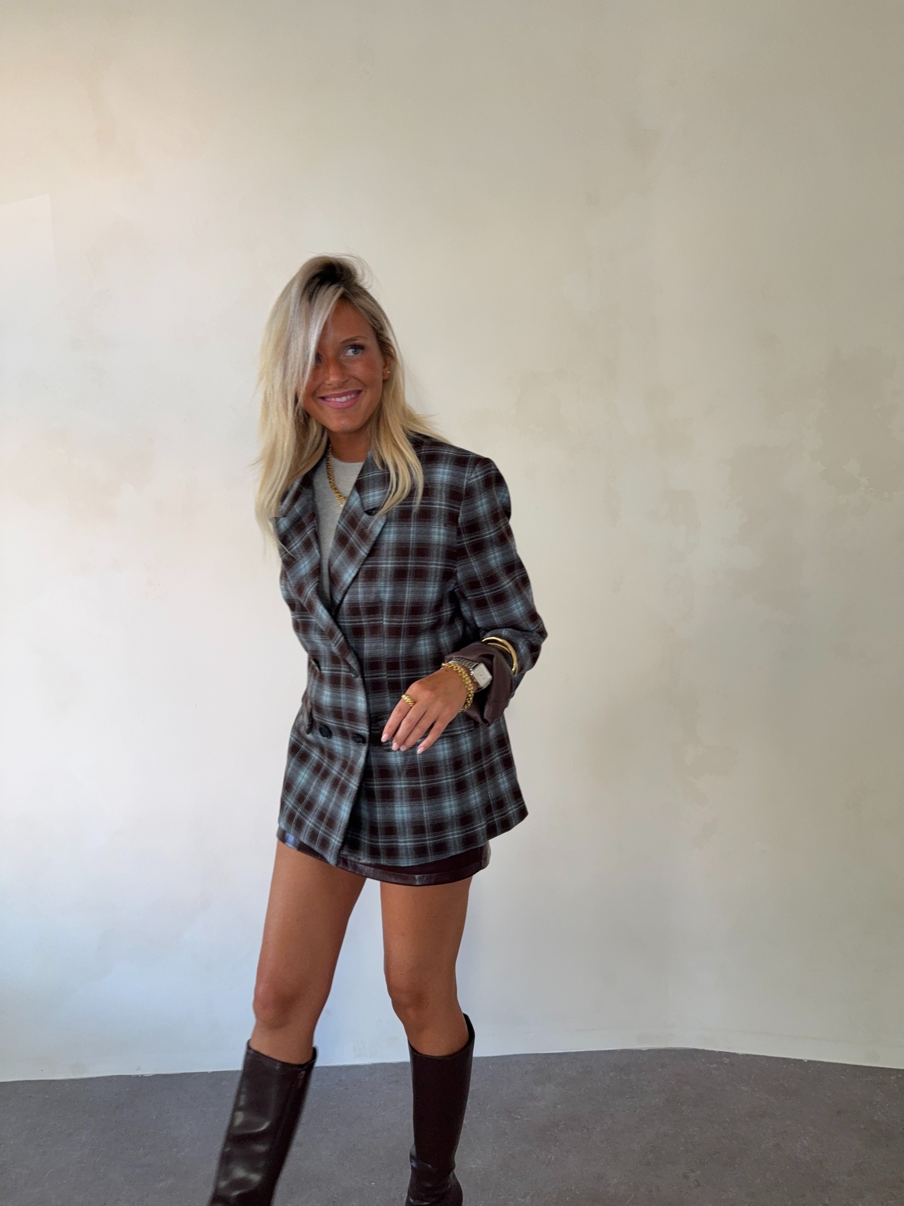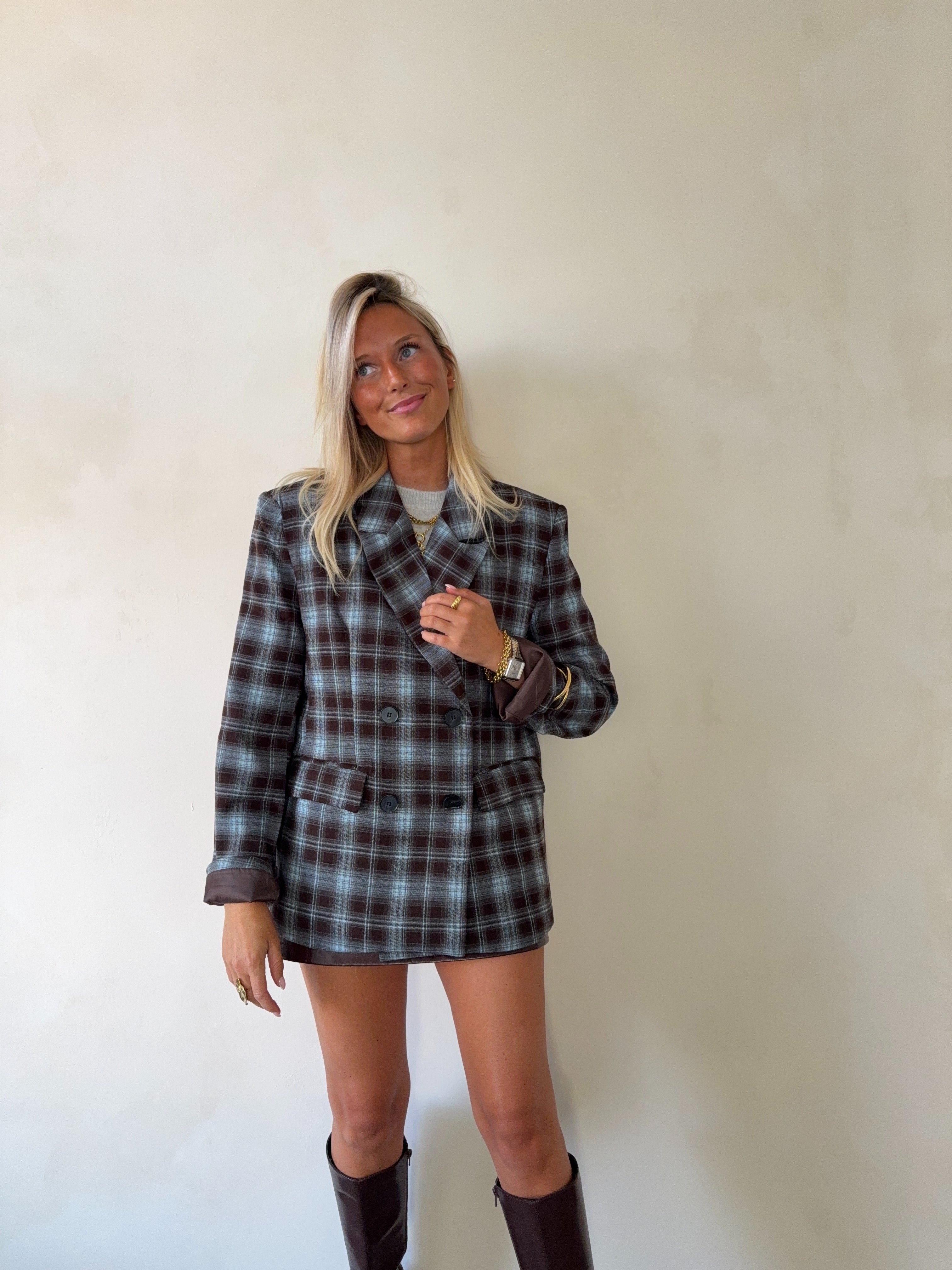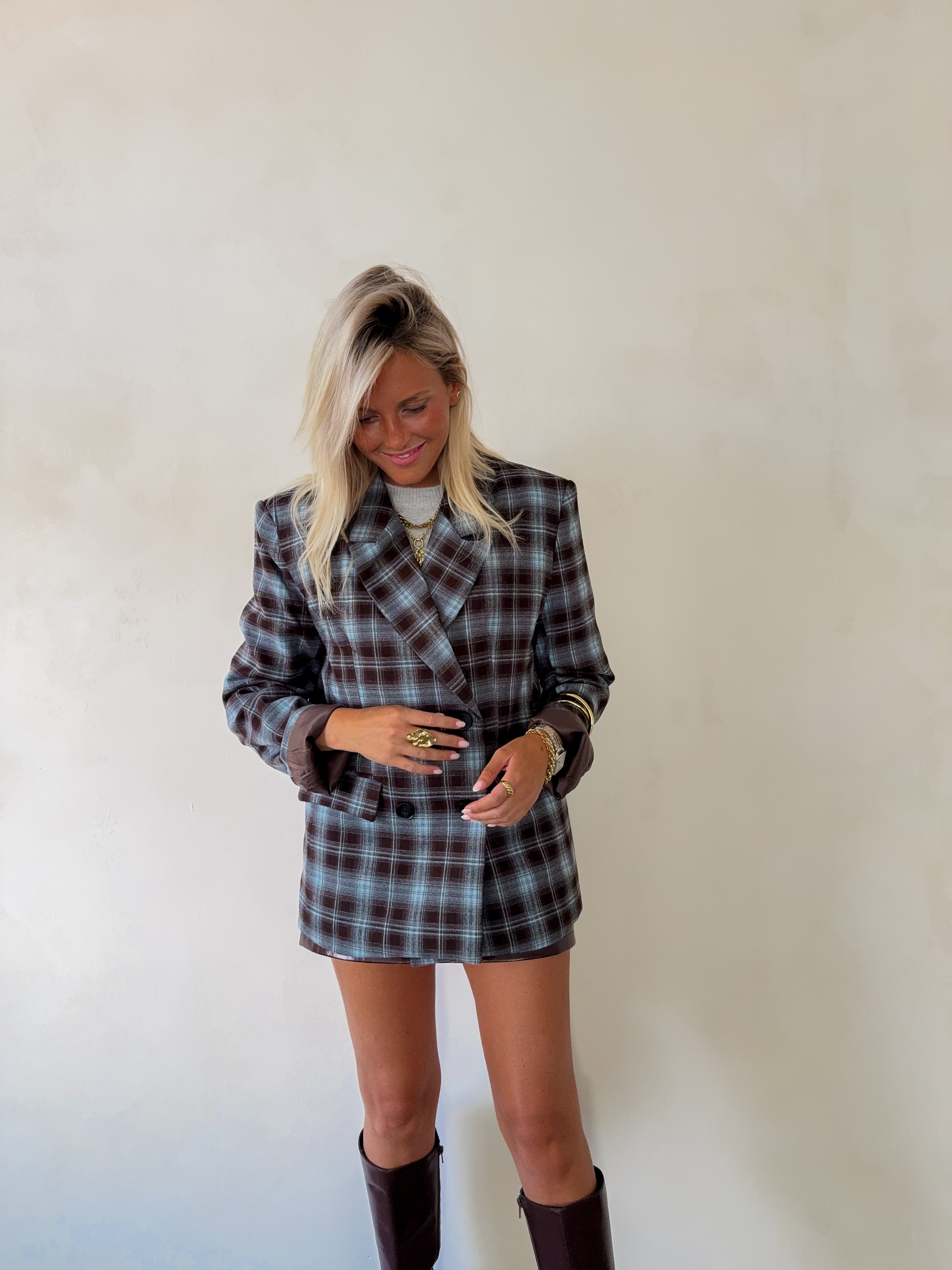 City oversized blazer checked blazer chocolate