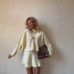 Een elegante, soepelvallende jurk met een minimalistische en vrouwelijke uitstraling. De luchtige stof en losse pasvorm zorgen voor een comfortabele maar stijlvolle look, perfect voor zowel een dagje uit als een avondje weg.