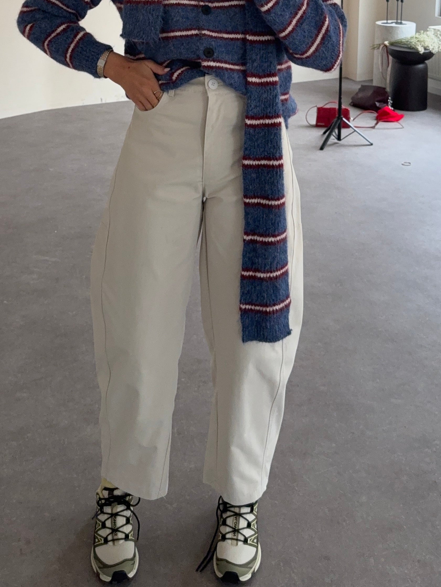 Moderne broek met een relaxed/balloon fit en een minimalistische uitstraling. Gemaakt van 100% polyester voor een lichte, comfortabele en onderhoudsvriendelijke draagervaring. De neutrale beige kleur maakt deze broek makkelijk te combineren voor zowel casual als nette looks.