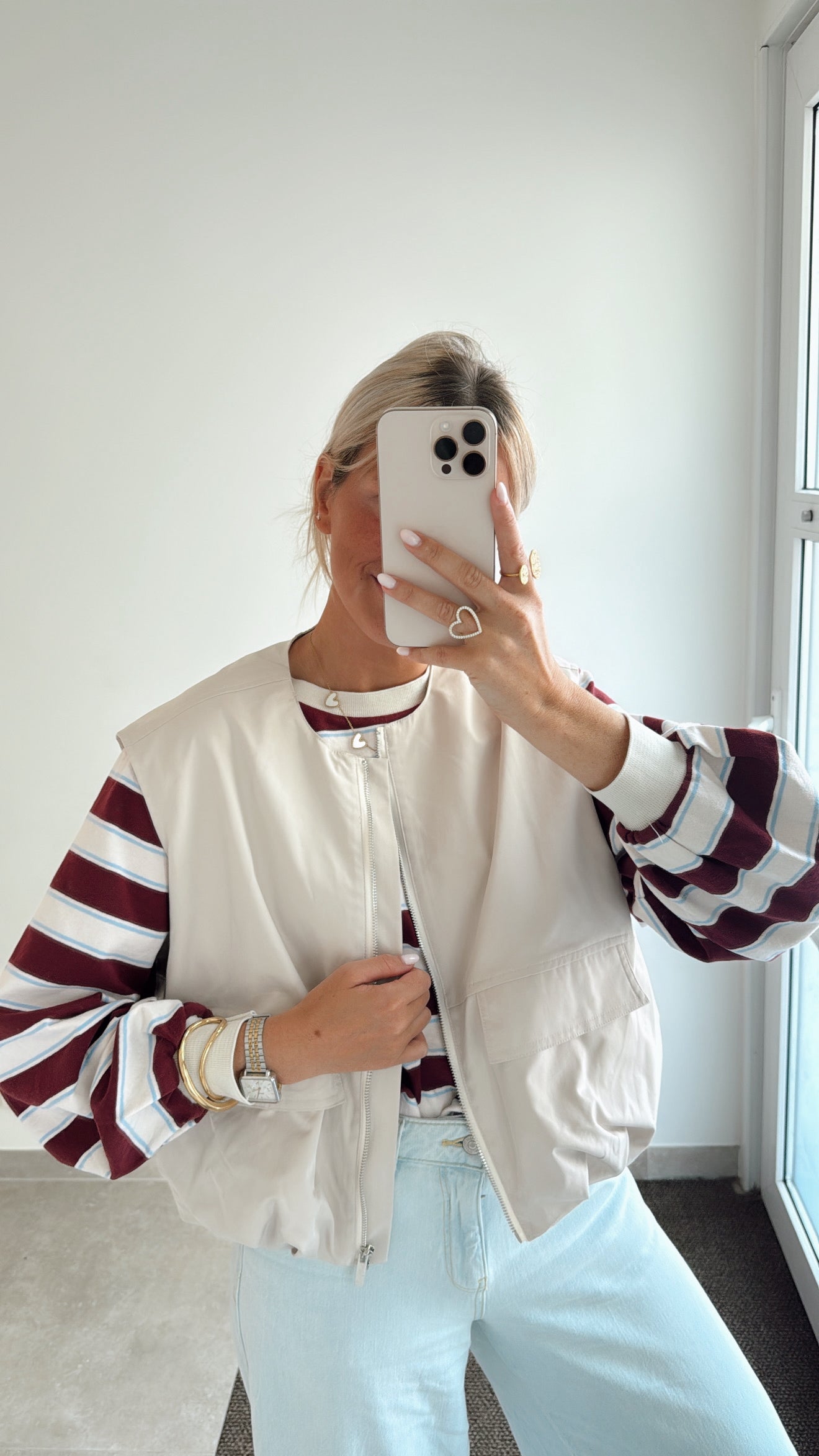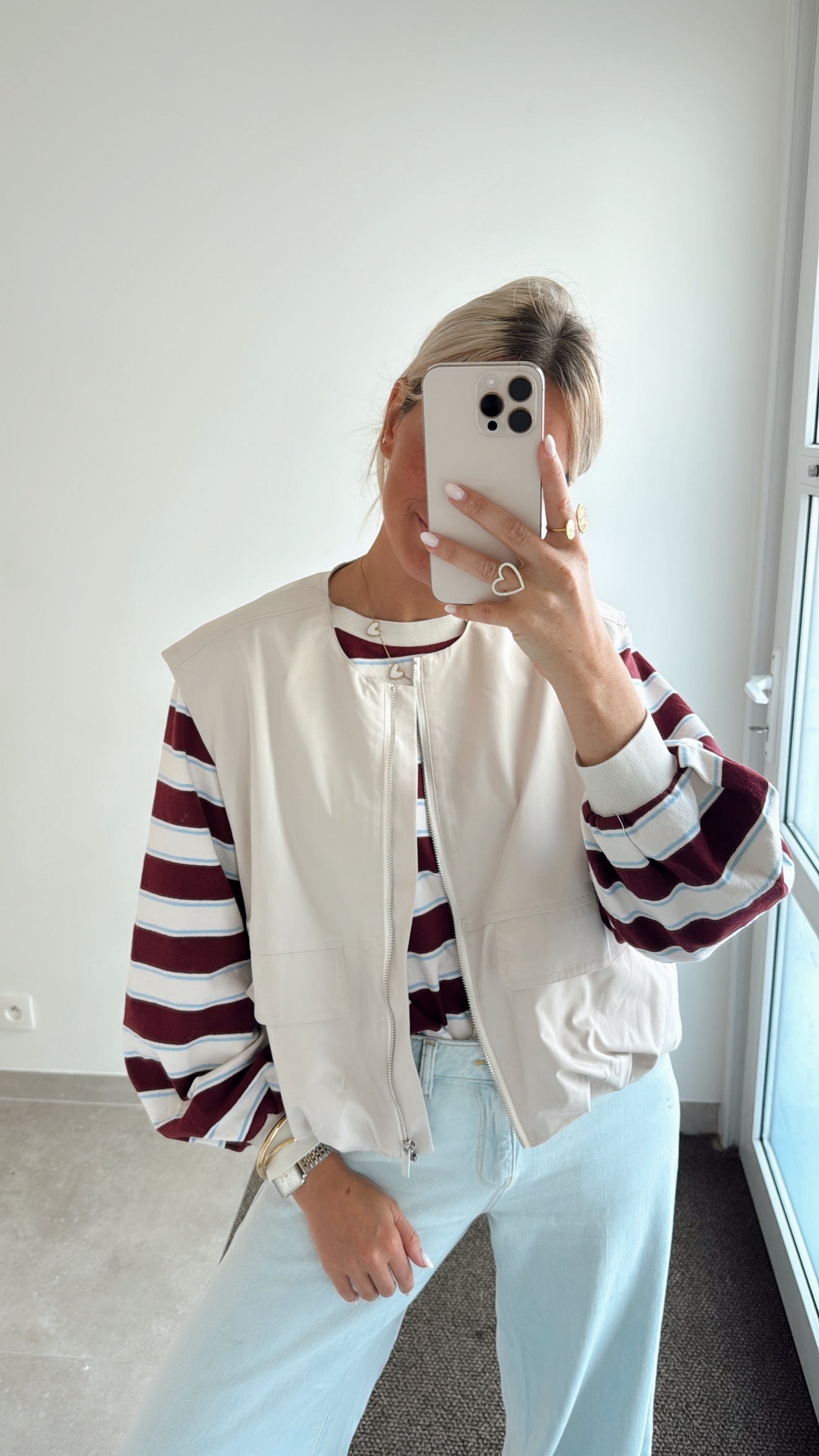 Half mouw giletje, met een ritssluiting, vanachter komt het ietsje langer