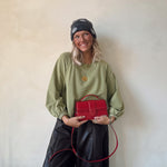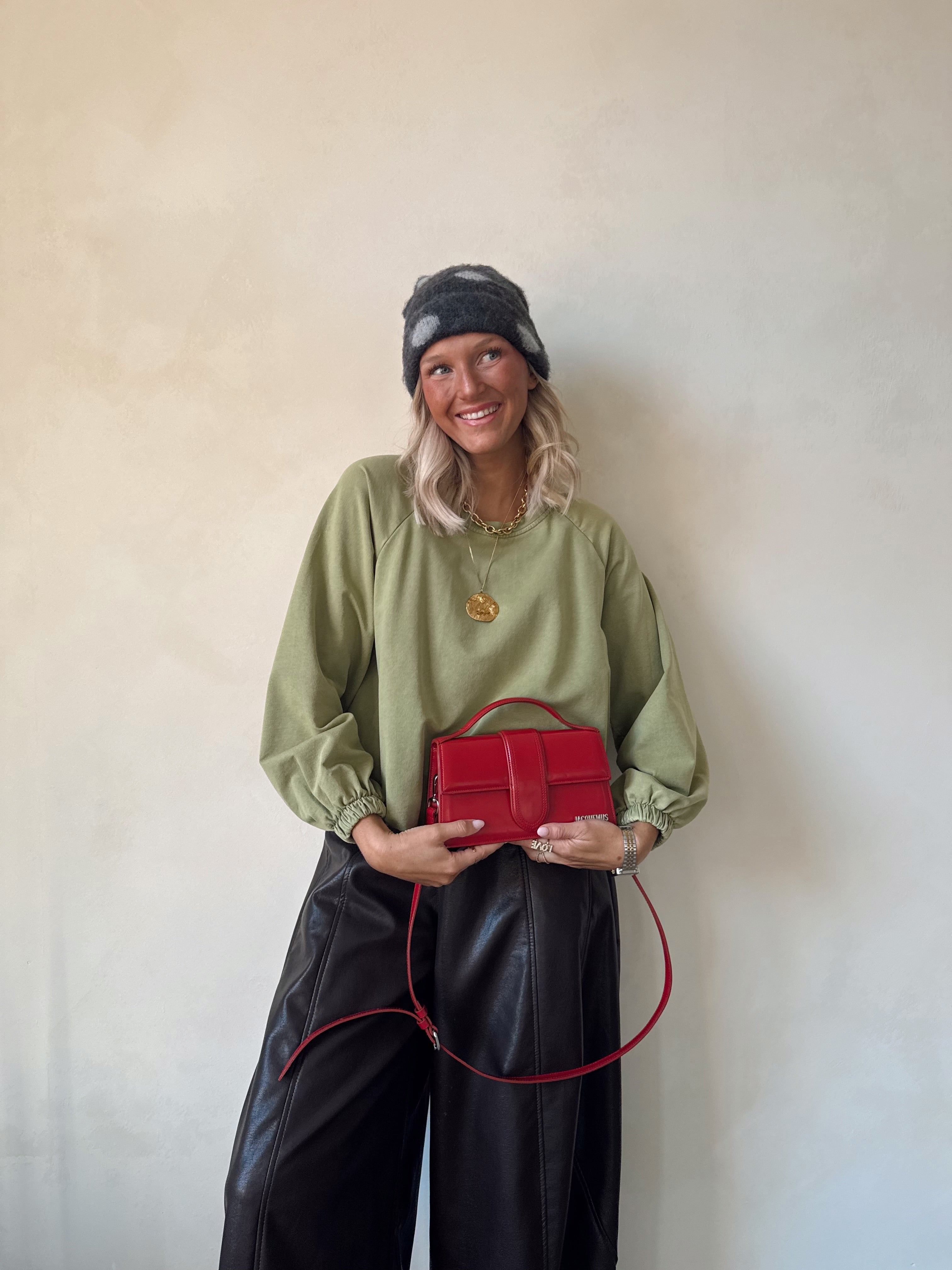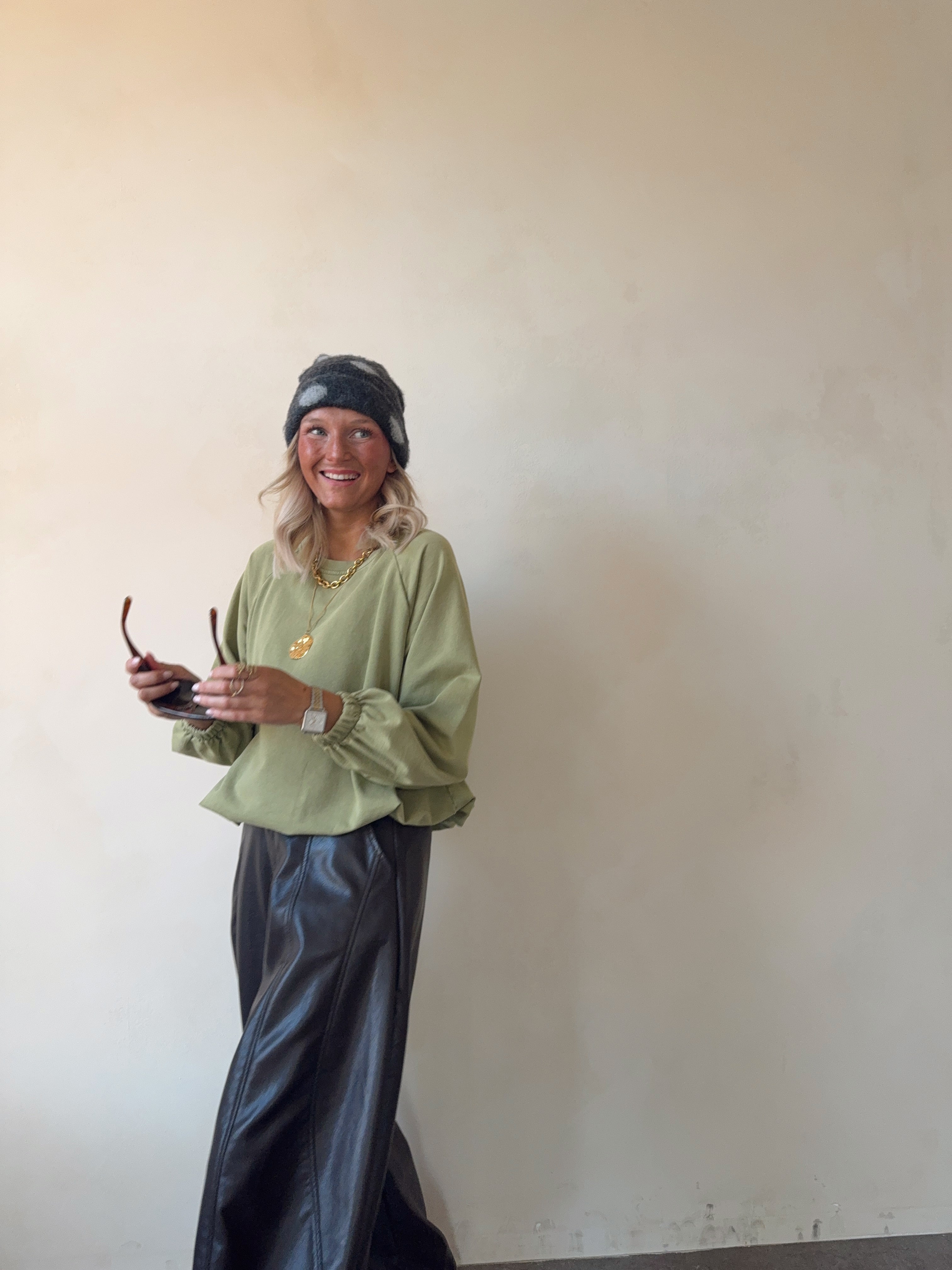 Comfortabele sweater in zachte olijfgroene tint met een relaxed fit en elastische boorden. Perfect voor een casual, cozy en trendy look.