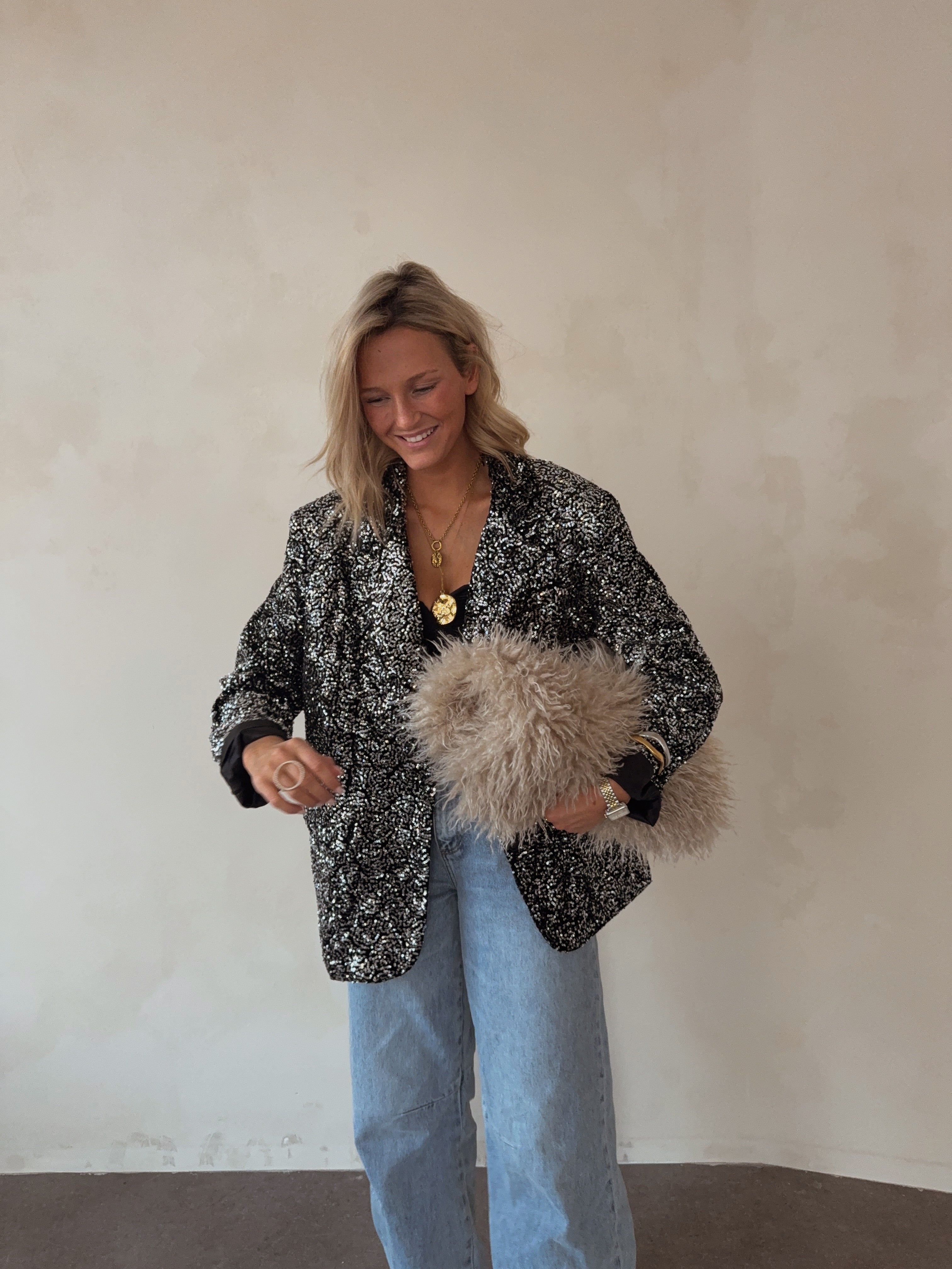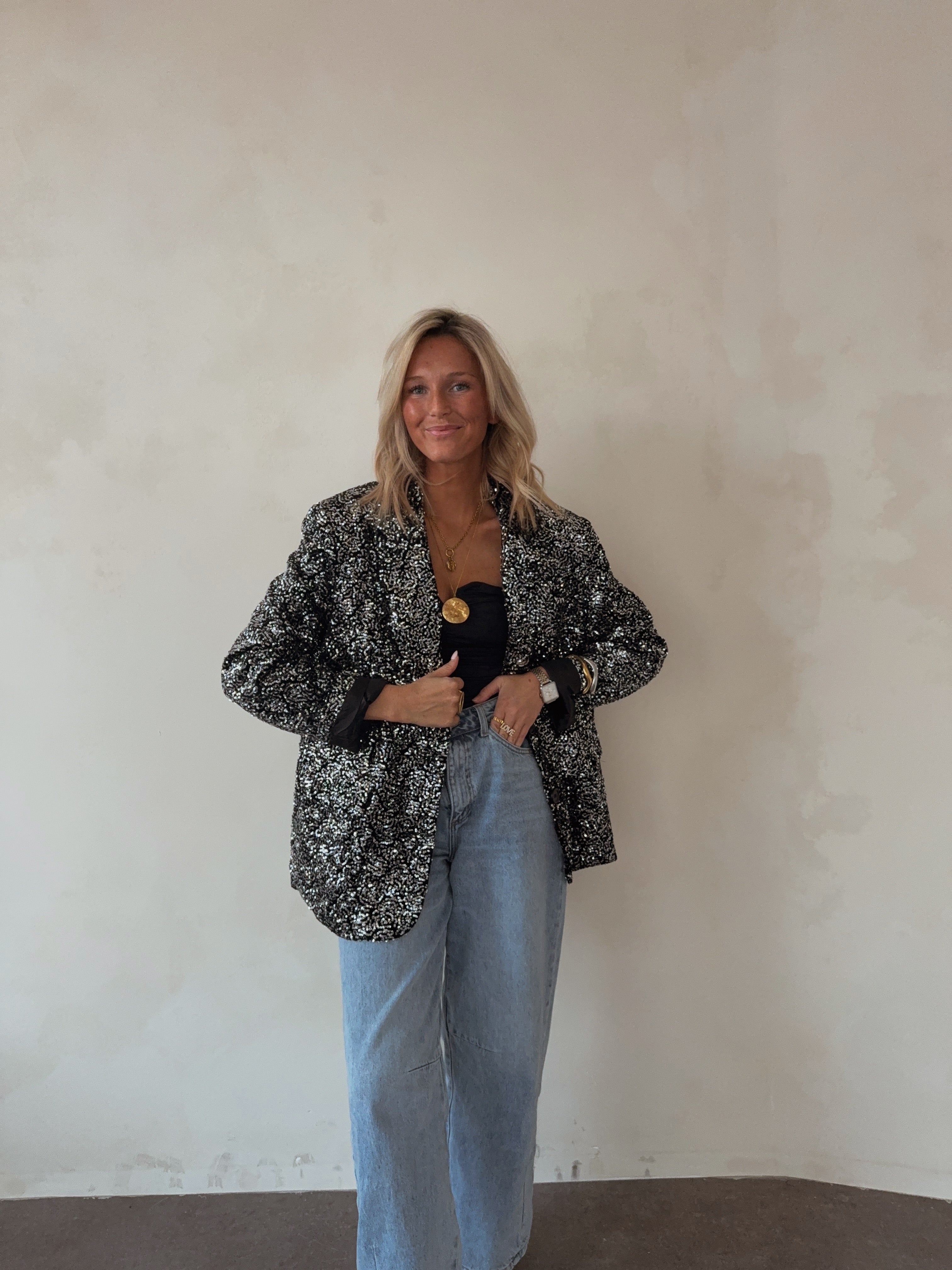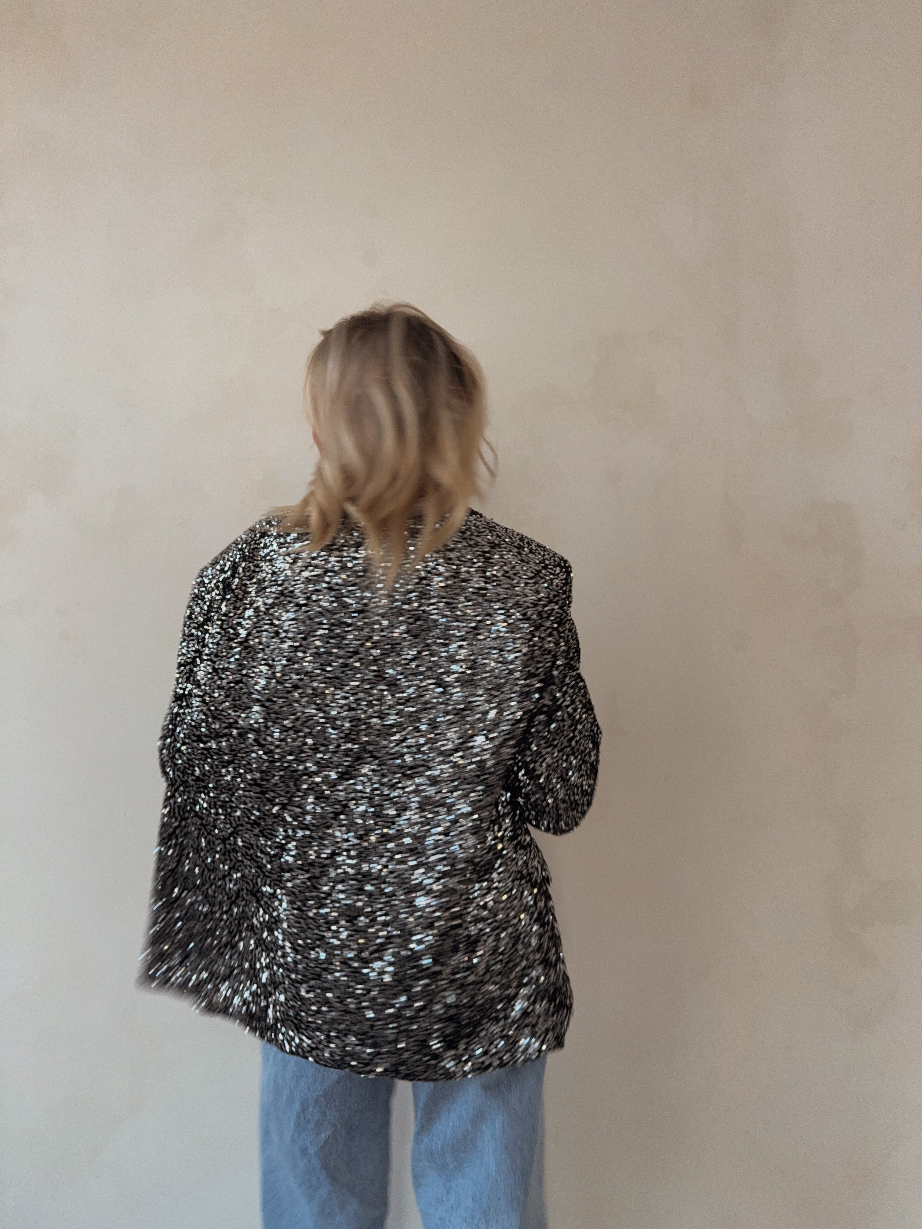 Overized blazer with sequins silver