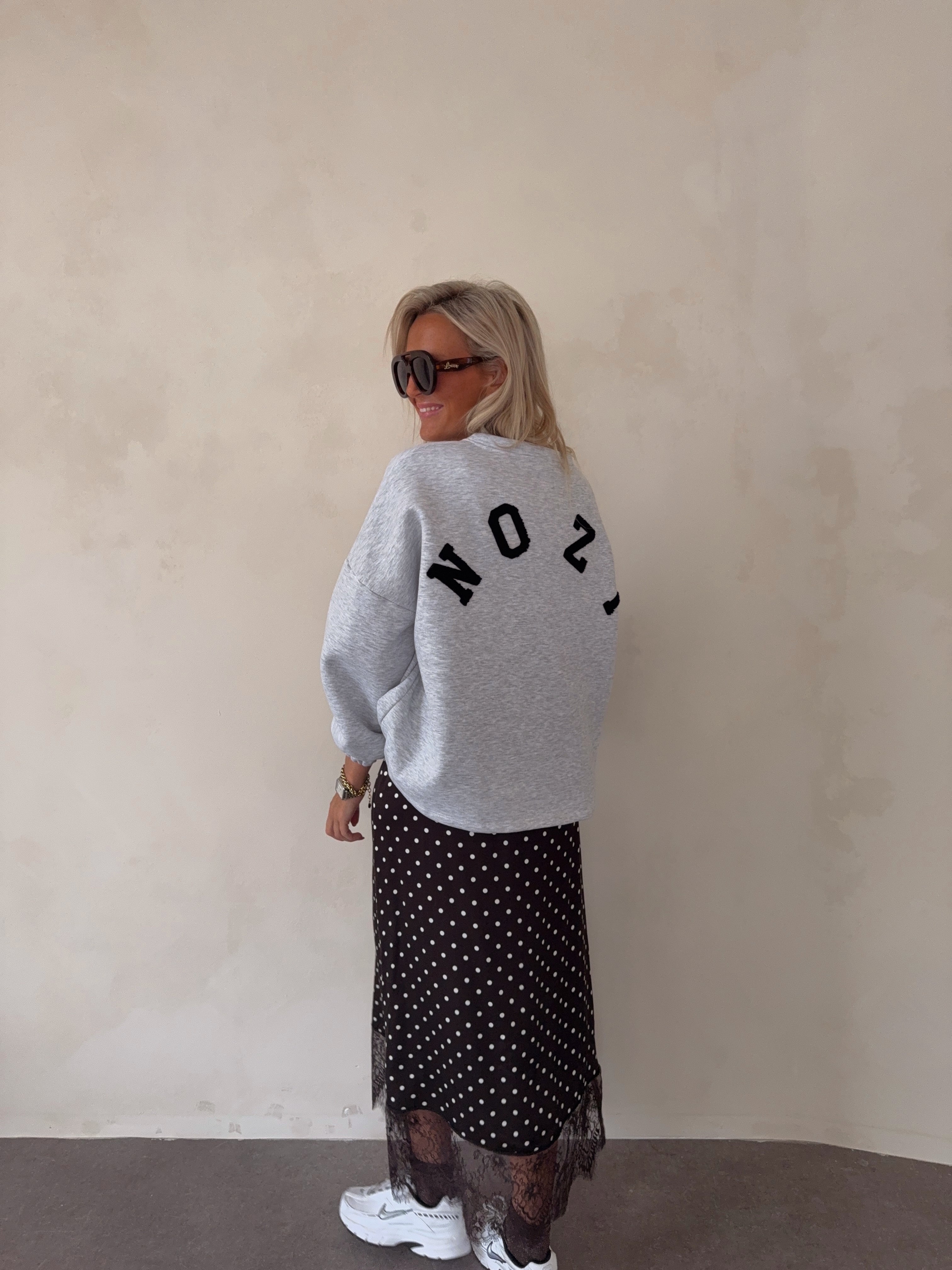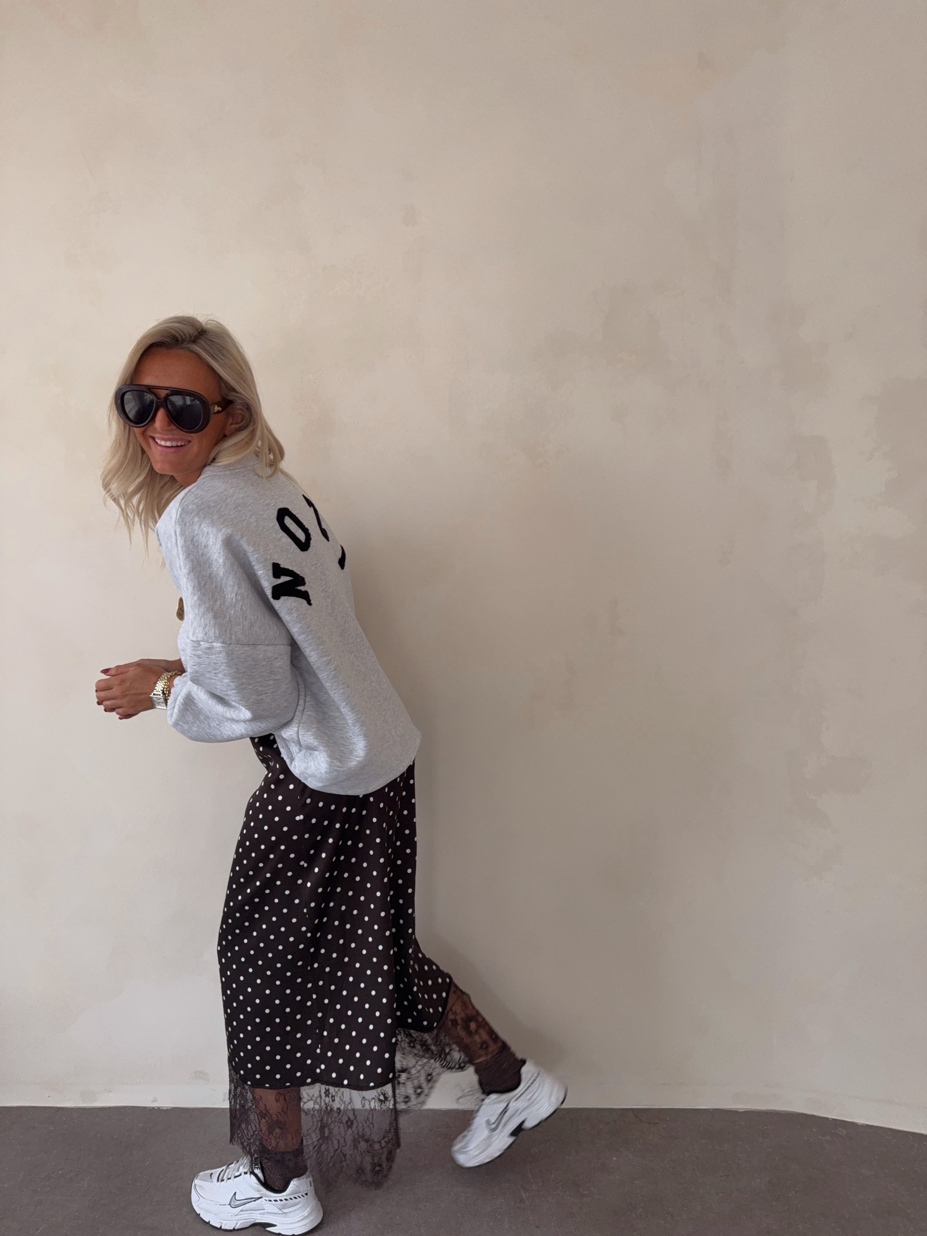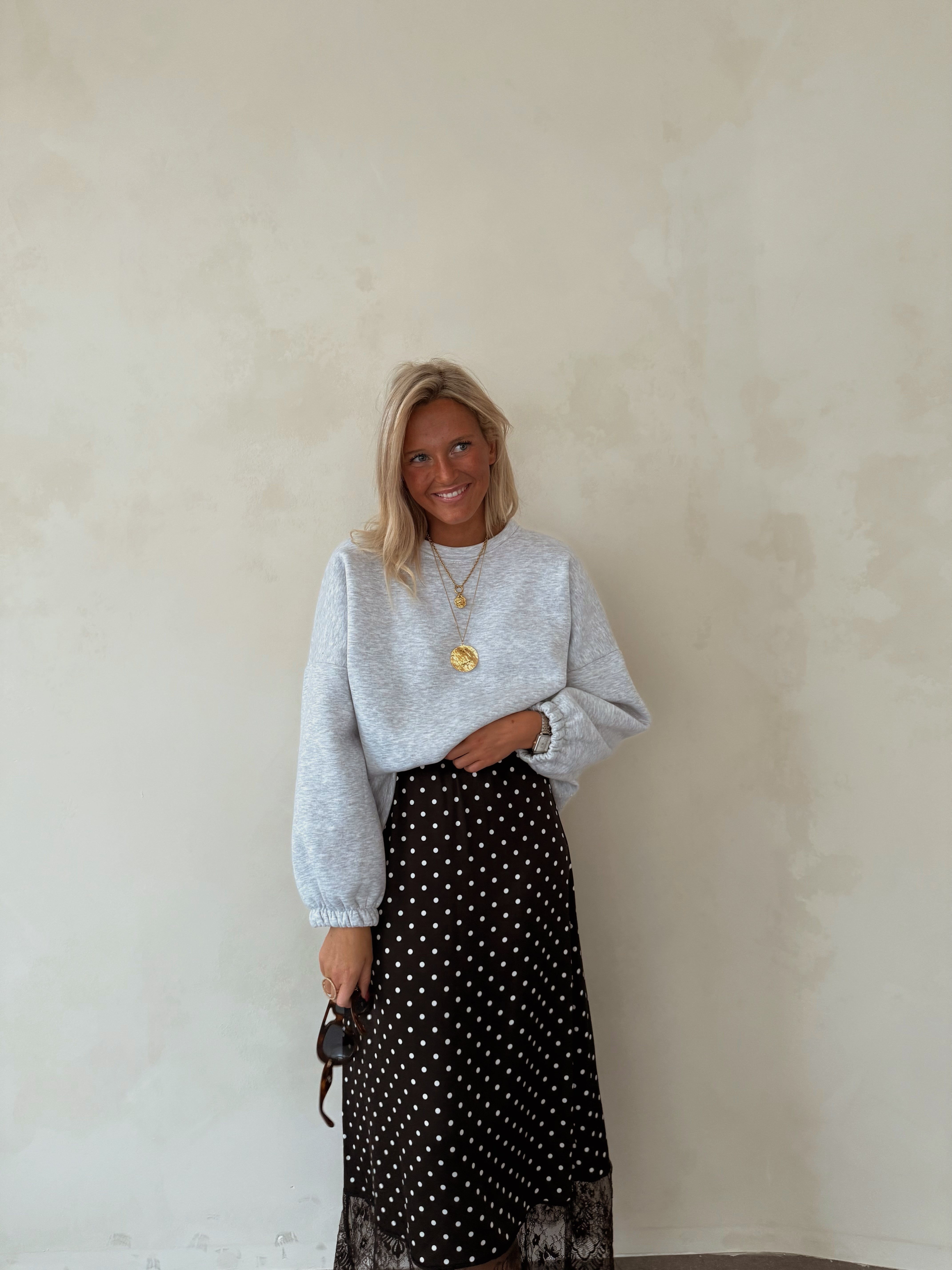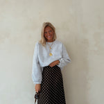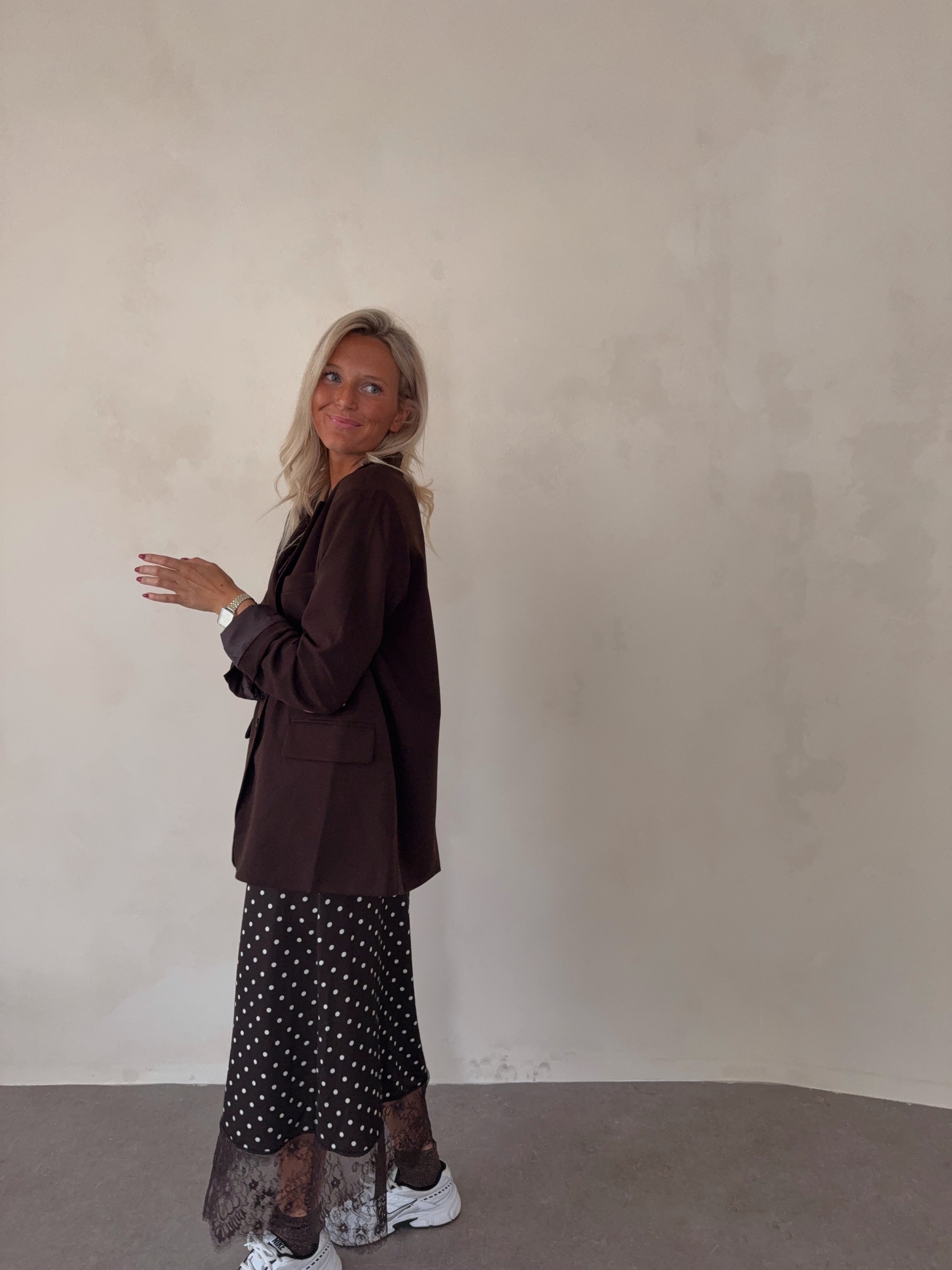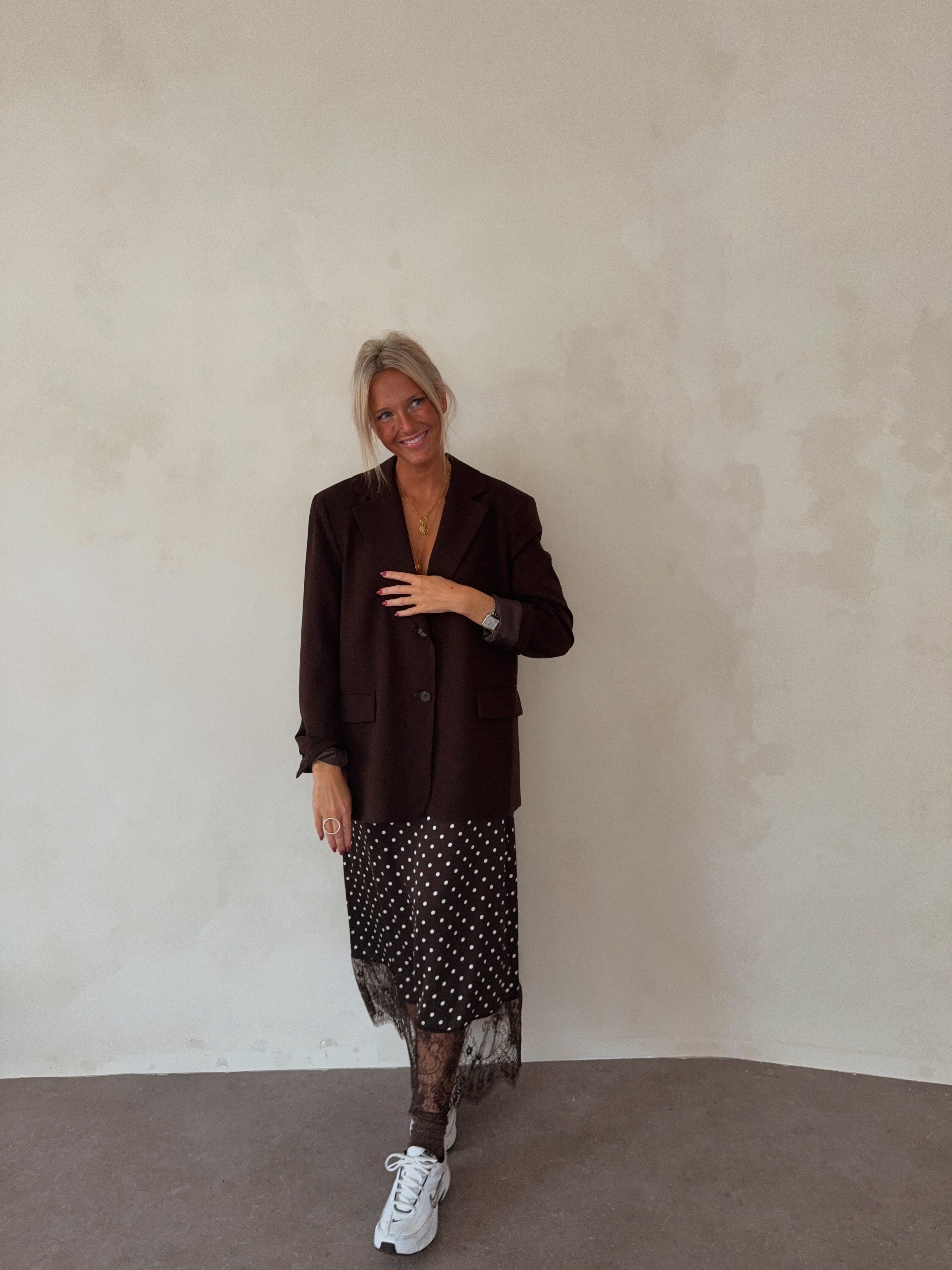 Satin lace skirt with dots chocolate